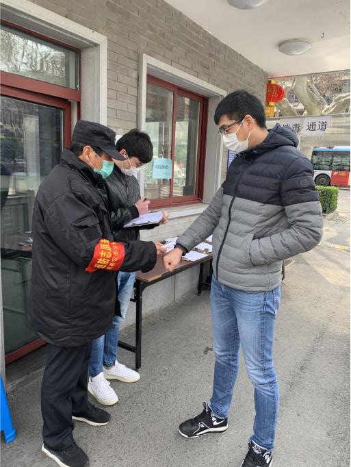 圖:公司員工配合社區人員對進(jìn)出園區人員進(jìn)行測溫登記
