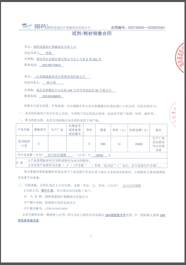 圖:醫用口罩采購合同