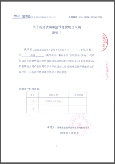 作為第一批國有企業(yè)改制而來(lái)的咨詢(xún)公司,回報社會(huì )一直是駿通人的使命和擔當。公司領(lǐng)導通過(guò)多日多方聯(lián)系籌措了500只醫用N95口罩并全部捐獻給江蘇省紅十字會(huì ),用于前線(xiàn)醫院的使用;
